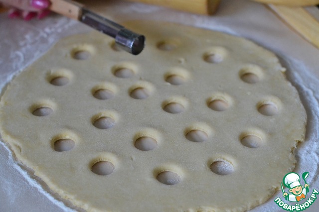 Произвольно делаем отверстия диаметром 2см. Можно пользоваться круглой формочкой. Я использовала нож для удаления серцевинки у яблока. Подошло!