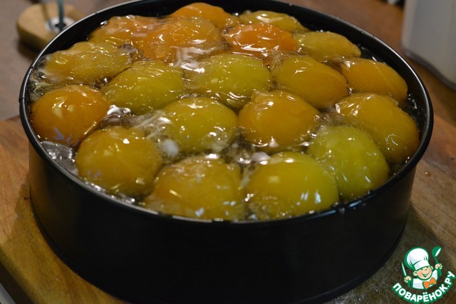 Выкладываем половинки абрикосов (Срезом вниз) на корпус. -