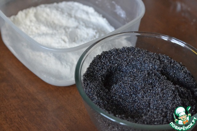 добавить весь мак и муку с разрыхлителем. ( по столовой ложке)