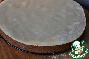 Раскатать марципан на круг, диаметром равным диаметру коржей. -