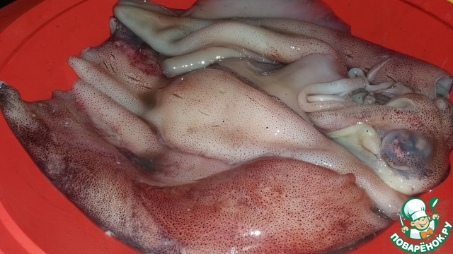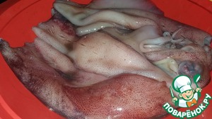 • Кальмаров помыть, почистить, пересыпать содой, оставить на 1 час.