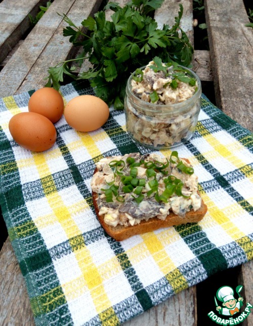Из рыбы удаляем кости, мелко режем. Яйца тоже мелко рубим.