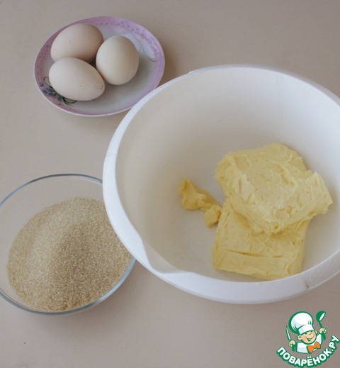 Итак, приступим, взбить размягченное сливочное масло с сахаром и щепоткой соли до пышной массы, взбивать в течение 7-8 минут. -