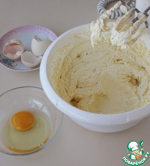 Ввести по одному яйцу не прекращая взбивать. Повторюсь, все ингредиенты должны быть комнатной температуры.