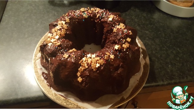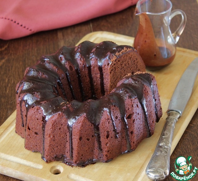 Полить остывший кекс глазурью, для этого растопить 50г шоколада + 2 ст. л. растительного масла.