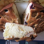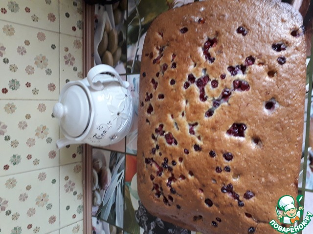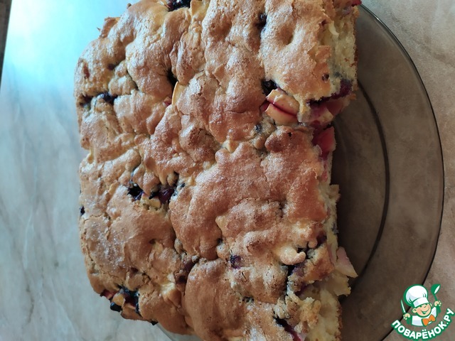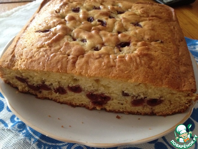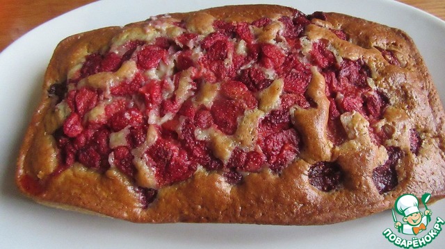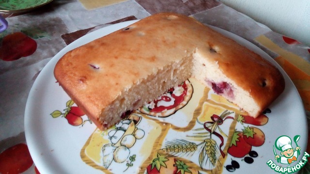 2. Тесто вылить в форму, застеленную пергаментом и смазанную маслом, сверху распределить ягоды. Выпекать пирог в разогретой до 180* духовке 30 - 35 минут. Пирог готов!