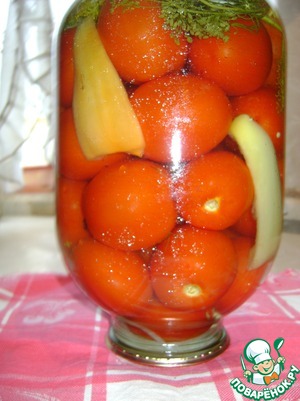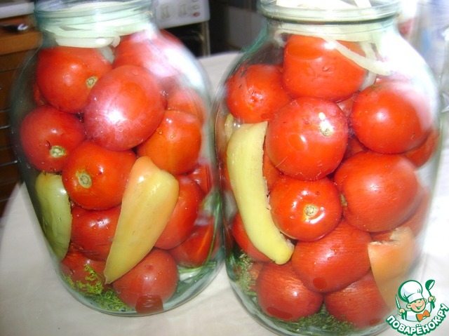Хочу предложить Вам ещё один рецепт консервированных помидоров моей свекрови - Галины Карповны! Помидорки получаются очень-очень вкусные! Использую 3-х литровые банки...