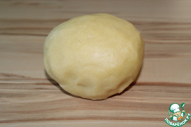 Из 100 г сахара, слив. масла, муки и 1 яйца замесить песочное крутое тесто. Завернуть в плёнку и оставить в холодильнике на 30 минут.