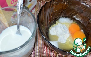 • В миску выложить муку, яйца, соль, сахар.