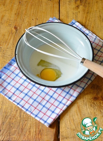 Первым делом нужно приготовить йоркширский пудинг. Для этого яйцо, соль и молоко взбейте венчиком -