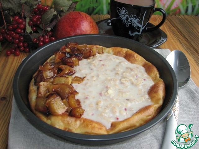В готовый йоркширский пудинг положите горячую кашу, на нее сверху выложите яблоки. К таком завтраку отлично подойдет крепкий кофе с пряностями!