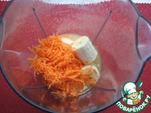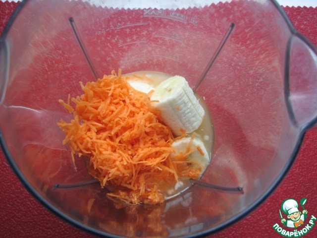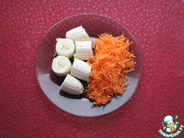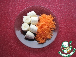 Очищенную морковь натереть на мелкой терке, банан порезать на кусочки.