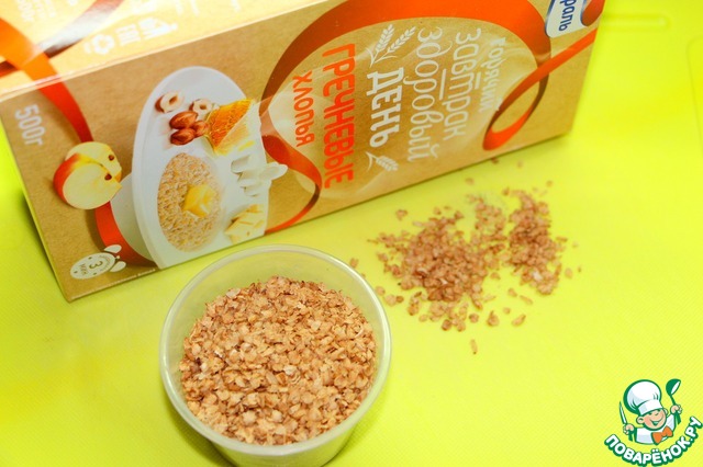 Отмерить нужное количество гречневых хлопьев. Именно с гречневыми хлопьями получится невероятный изысканный вкус.