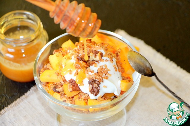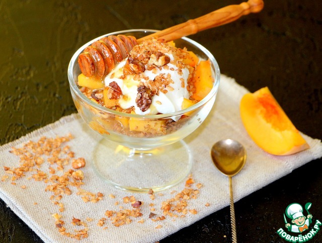 Рецепт «Гречневые мюсли с йогуртом и персиком»: