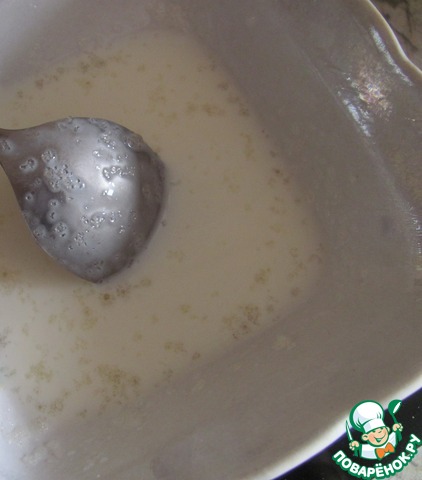 Желатин замочить в 30 граммах молока. Оставить набухать.