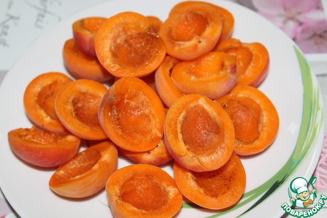 Для начала подготовить абрикосы - помыть, разрезать пополам, вынуть косточки.