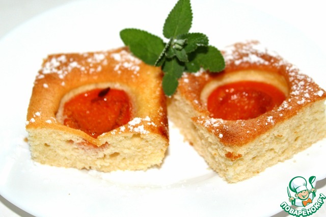 [+5]Абрикосы разложила часто и часть половинок утонули в тесо, получилось поверх и внутри, нам очень понравился!