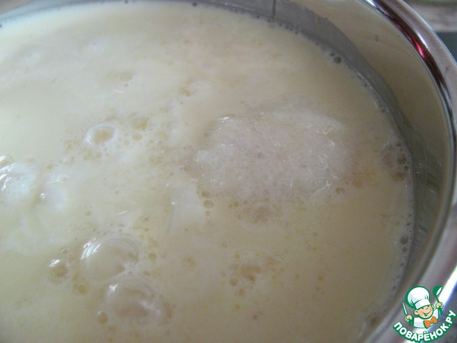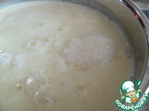 Сливки с сахаром довести до кипения, добавить молоко с желатином и ваниль. Растворить желатин, помешивая.