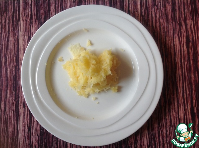 Яблоко помыть, очистить от кожуры, удалить семенную коробку и натереть на мелкой тёрке.