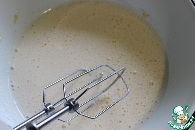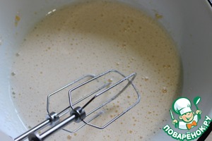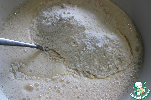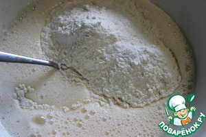 Высыпать в смесь муку, смешанную с содой и хорошо перемешать наше тесто