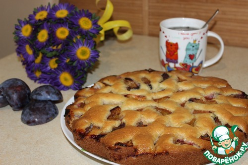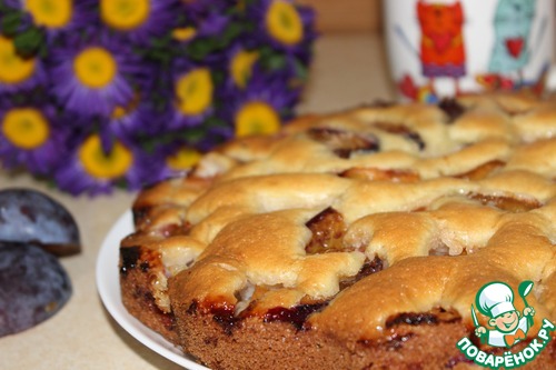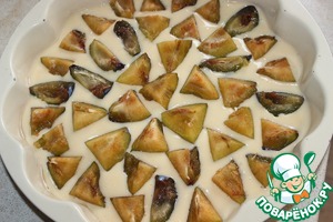Вылить в нее тесто и сверху выложить сливы, разрезанные на четыре части.