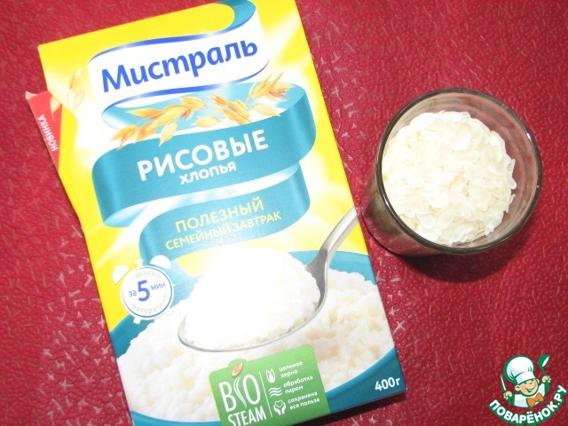 Для приготовления панкейков нам понадобятся рисовые хлопья. Я выбрала хлопья ТМ Мистраль. Хлопья немного измельчить с помощью кофемолки.