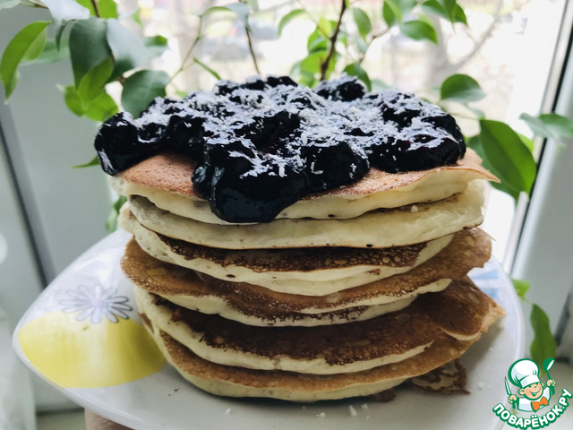 Предлагаю побаловать своих близких вкуснейшими панкейками с кокосовой стружкой, прекрасным дополнением к которым станет ягодный соус.