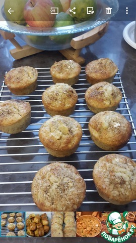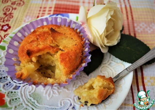 Выпекать при t=180 примерно 20-30 мин. ( до сухой спички). Можно кушать теплыми или остывшими. За счет яблок, они получаются влажные (не сырые) и долго не черствеют.