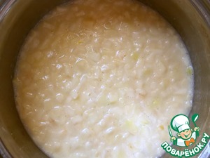 Смешать молоко, масло, яйца и очищенное мелко резанное яблоко.