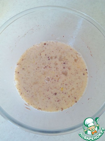 В небольшой миске размять вилкой банан, добавить молоко, яйцо, корицу и соль. По желанию добавить сахар (мед и т. п.)