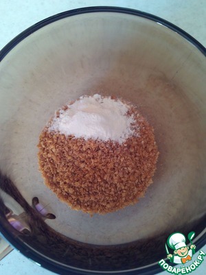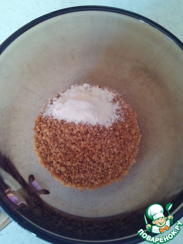 В отдельной миске смешать измельченные хлопья и разрыхлитель