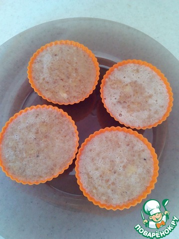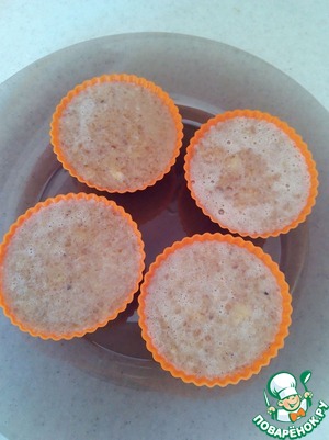 Выложить тесто в формочки для кекса или кружку и готовить около 4 минут в микроволновой печи до образования аппетитной корочки