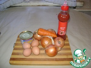 Ингредиенты для «Луковые оладьи с рыбными консервами»: