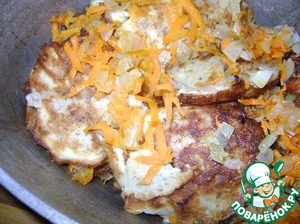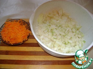 Морковь натереть на крупной тёрке, лук - мелко нарезать.