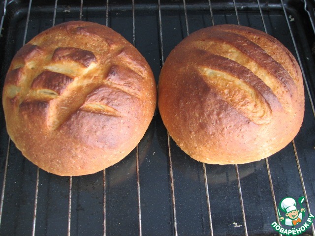 Приготовленное тесто разделить на две части и сформировать хлеб. Оставить на расстойку на 1 час. в теплом месте.