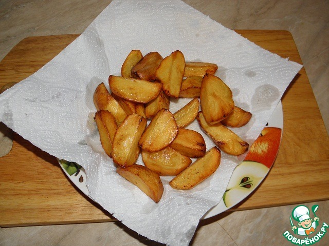 Далее выкладываем картофель на бумажную салфетку, для удаления лишнего масла и посыпаем солью (лучше крупной).