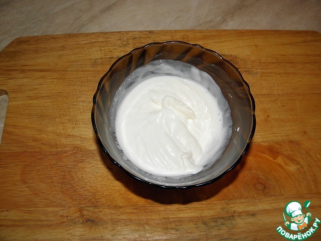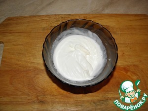 Сметану, майонез и воду слегка взбить (можно блендером). -