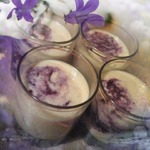 В бокалы на персиковый смузи влить черничную массу, слегка перемешать с помощью деревянной шпажки, чтобы смешать цвета. Украсить смузи по своему вкусу и подать к столу!