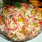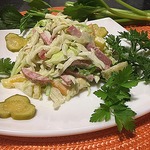 Предлагаю приготовить яркий, легкий и свежий салат из молодой капусты с полукопченой колбасой и сладким перцем. Прекрасная заправка от Константина Ивлева дополняет и насыщает салат. Пробуйте, экспериментируйте и наслаждайтесь!!!