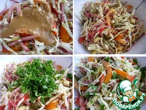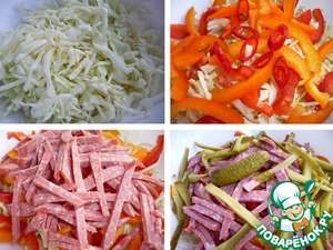 Ингредиенты для «Салат из молодой капусты с колбасой»: