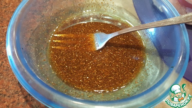 В посудине смешать соевый соус, специи и растительное масло.