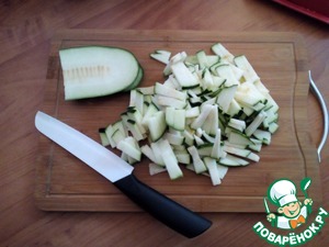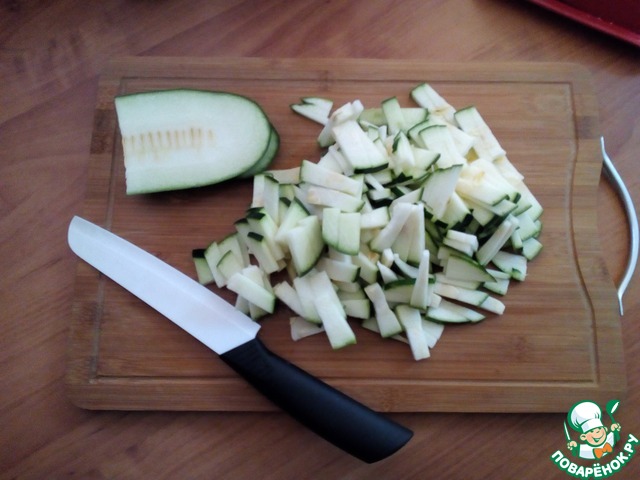 Готовим всё, что нам пригодится. Я взяла для запеканки цукини. Кожу не убирала.