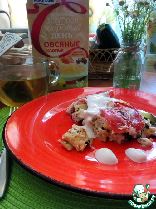 Овсяная запеканка на завтрак с овощами:цукини, помидором, чесноком, запечённая в сливках с яйцами в духовке. Без масла. Диетическое полезное блюдо с утра. Вкусно и не сложно.