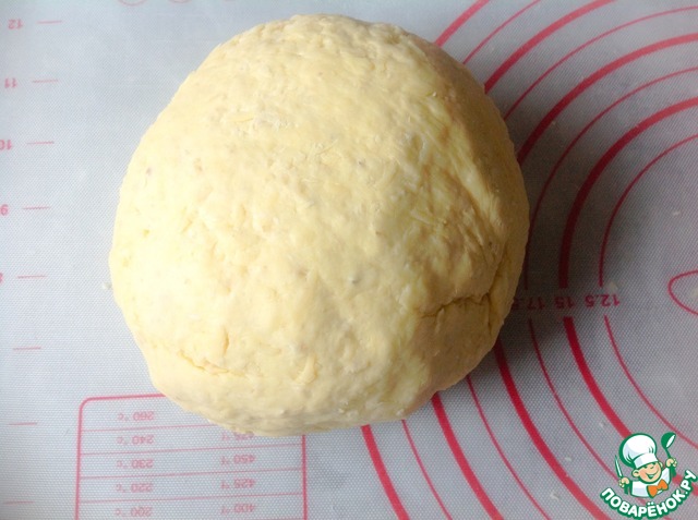 Добавить в тесто тертый сыр, перемешать, чтобы сыр равномерно распределился, и немного помесить. При необходимости добавить муку. Но тесто должно быть мягкое!