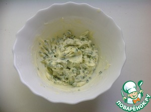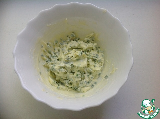 Приготовить луковое масло: в небольшой миске смешать размягченное сливочное масло с нарезанным зеленым луком, посолить по вкусу. Отложить в сторону.