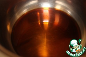 Для заправки в кастрюльке нагреть уксус, добавить сахар и оставшийся соевый соус (1,5 ст. л.), прогреть до растворения сахара, помешивая.
