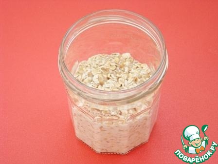 Высыпать в банку смесь хлопьев. Приготовить овсянку можно не только в банке, но и в пластиковом контейнере или миске. Но все же классическая "ленивая" овсянка делается в стеклянной банке с широким горлышком и завинчивающейся крышкой.