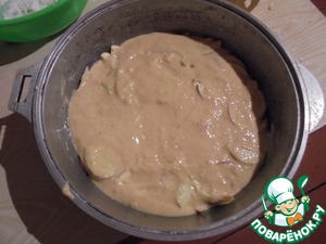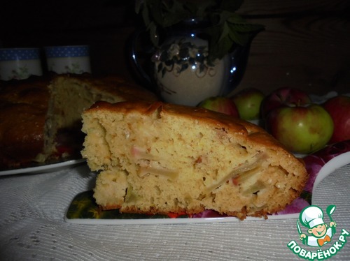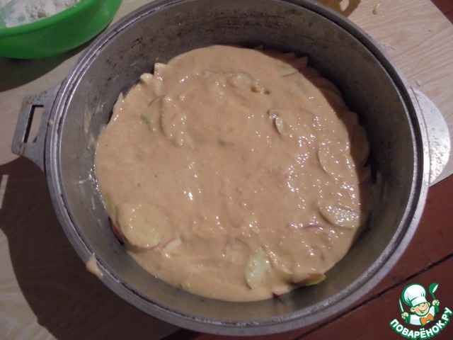 • Форму для выпечки смажьте растительным маслом, выложите один слой яблок, слой теста, затем оставшиеся яблоки и оставшееся тесто. Выпекайте в разогретой до 180 градусов в духовке в течение 35-40 минут.