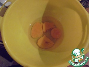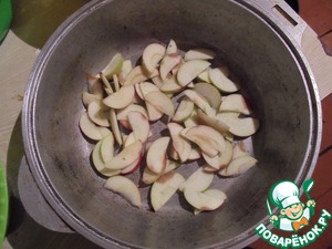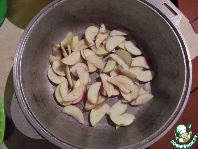 • Яблоки очистите, удалите сердцевину и нарежьте тоненькими ломтиками.