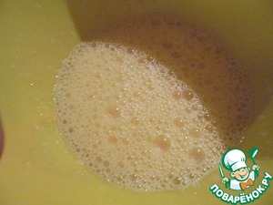 • Взбить яйца до пышной пены. Добавить сгущенное молоко, взбить ещё раз.
